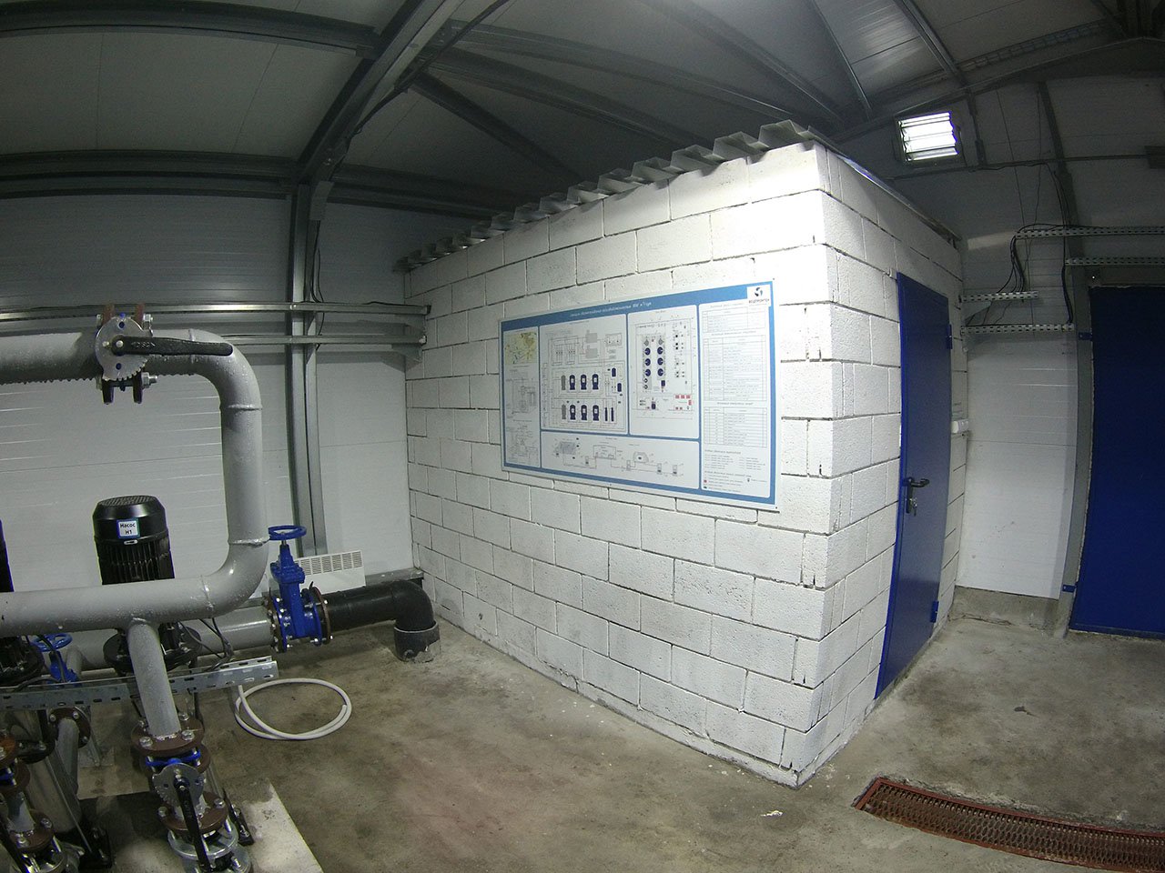 - модульная станция очистки воды, смонтированная на раме и располагающаяся внутри существующего помещения.